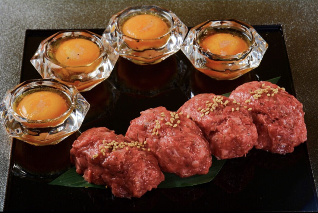 和牛と天然マグロがコラボしたユッケのようなレアハンバーグ!