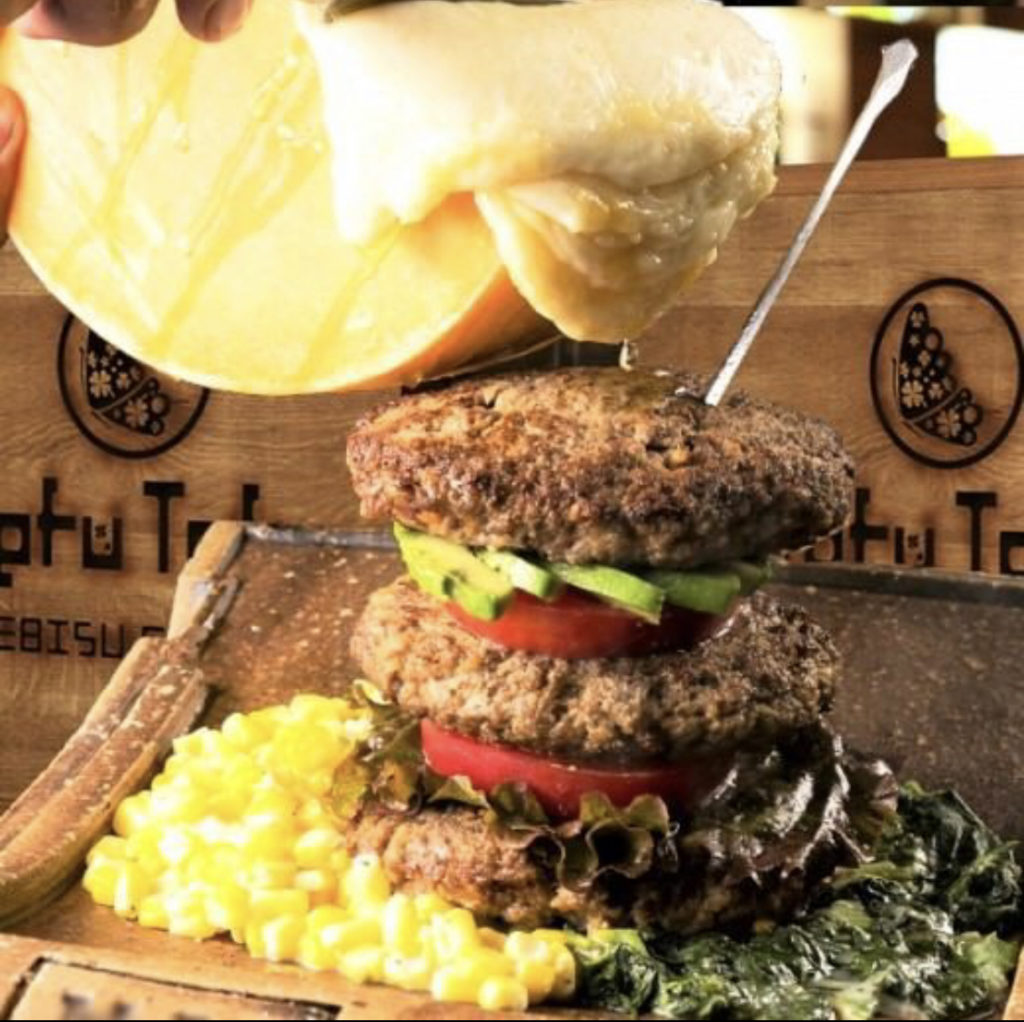 200gのハンバーグが3枚も重なっていてボリューム満点!ラクレットチーズとトリュフソースのマリアージュをお楽しみください。